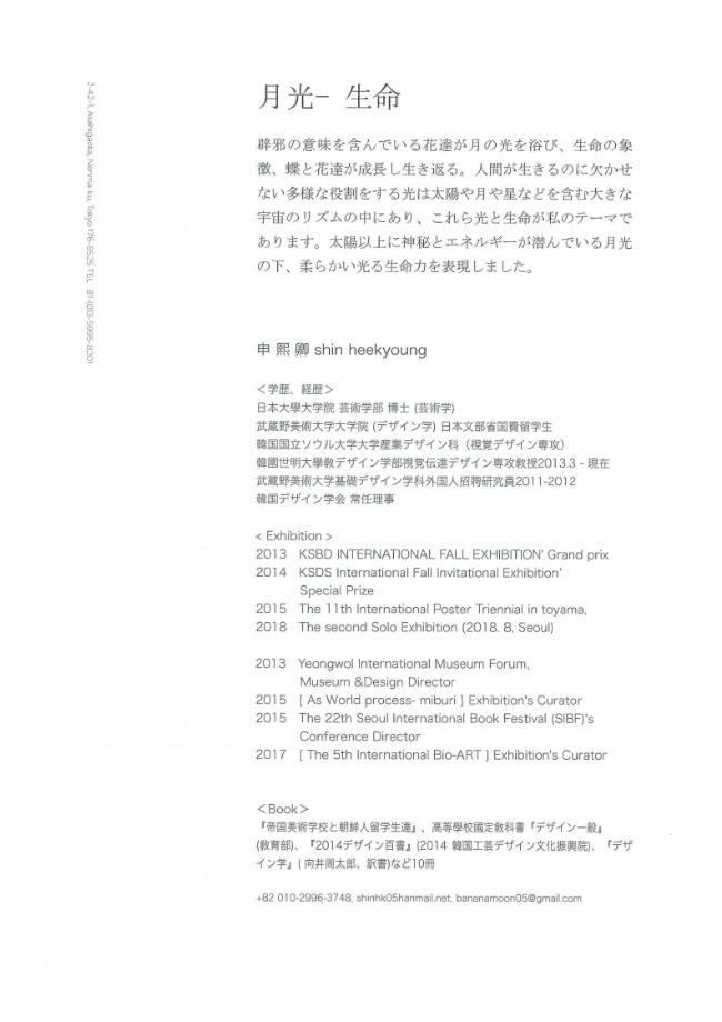 본문 시작 홈으로 커뮤니티 대학소개 학과소개 입학안내 커뮤니티 홈페이지가이드 사진 자료실 대학소식 학과소식 자료실 사진 자료실 동영상 자료실 사진 자료실 페이스북 트위터 프린트 [융합디자인학부] 시각디자인 전공 신희경 교수 일본 닛본대학 지원 갤러리에서 전시회 개최 인문예술대학 7403 2018-04-27 융합디자인학부 시각디자인 전공 신희경 교수가 일본 닛본대학에서 지원을 받아 갤러리에서 전시회를 개최하였습니다. 일시 : 2018. 04. 23 - 2018. 05. 12 시간 : 10 : 00 ~ 18 : 00 장소 : 2-42-1, Asahigaoka, Nerima-ku, Tokyo 176-8525 전화번호 : 81-(0)3-5995-8201 목록 이전[인문예술대학 주최] 4월 3일 정은성CEO 명사특강 다음 제1회 교수와 학생이 함께하는 예술무대 담당부서 : 인문예술대학 담당자 : - 연락처 : 043-649-7402 최종수정일 : 2024-10-26 만족도조사 만족도 조사 이 페이지에서 제공하는 정보에 대하여 만족하시나요? 매우만족 만족 보통 불만족 매우불만족