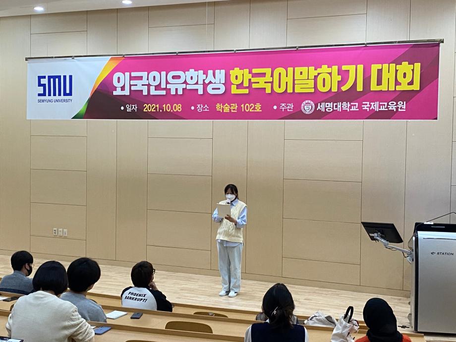 본문 시작 2021-2 외국인 유학생 한국어말하기대회 국제교육원 2273 2021-10-08 2021-2 외국인 유학생 한국어말하기대회 목록 이전2021 외국인 유학생 제천근교 체험학습(의림지 역사박물관) 다음 2021-가을학기 생활적응지원 프로그램 담당부서 : 국제교육원 담당자 : - 연락처 : 043-649-1185 최종수정일 : 2024-10-26 만족도조사 만족도 조사 이 페이지에서 제공하는 정보에 대하여 만족하시나요? 매우만족 만족 보통 불만족 매우불만족