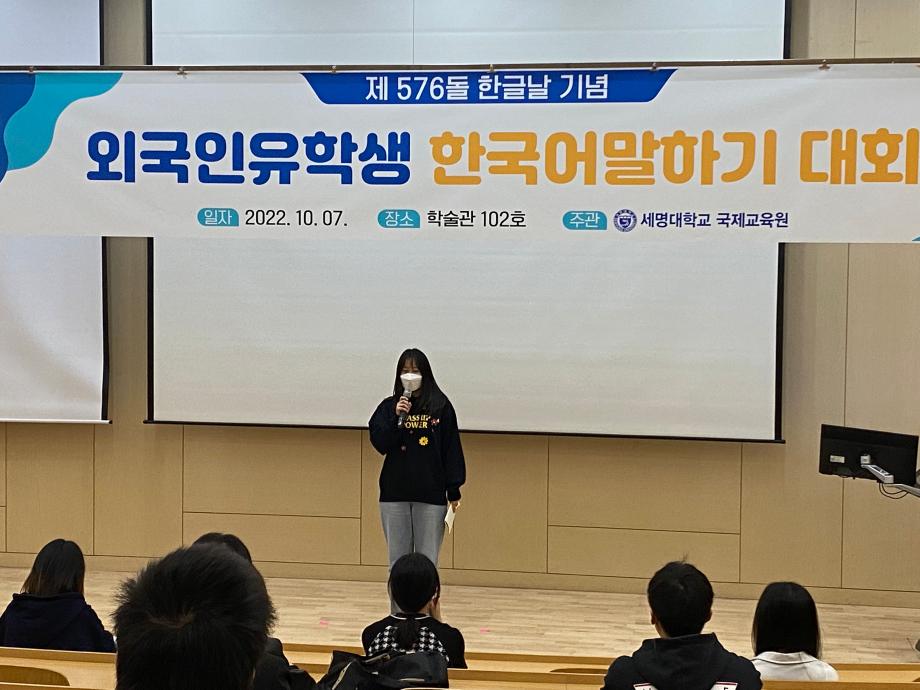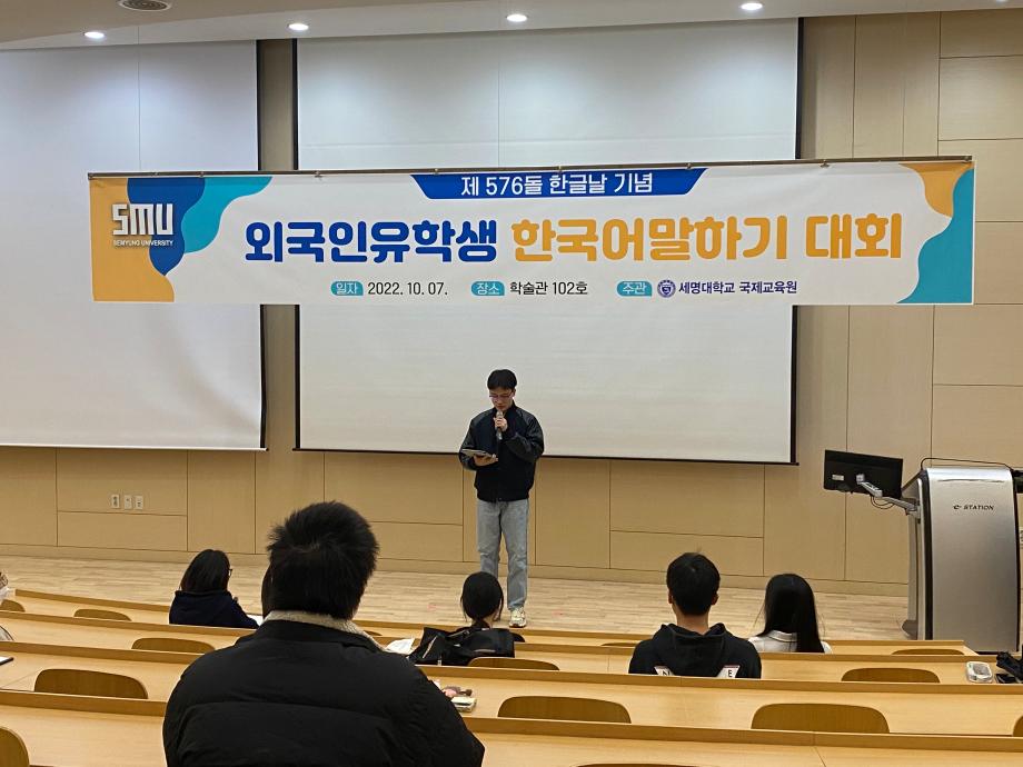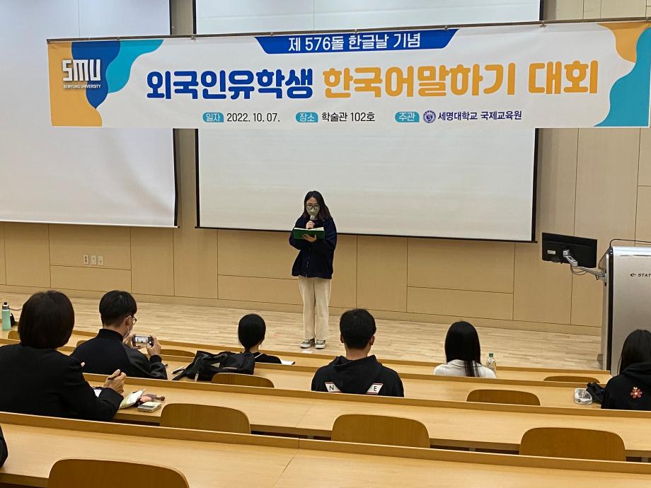 본문 시작 2022-외국인 유학생 한국어 말하기 대회 국제교육원 2357 2022-10-07 2022-외국인 유학생 한국어 말하기 대회 목록 이전2022-여름학기 종강 수료식 다음 2022-외국인 유학생 한식요리체험 담당부서 : 국제교육원 담당자 : - 연락처 : 043-649-1185 최종수정일 : 2024-10-26 만족도조사 만족도 조사 이 페이지에서 제공하는 정보에 대하여 만족하시나요? 매우만족 만족 보통 불만족 매우불만족
