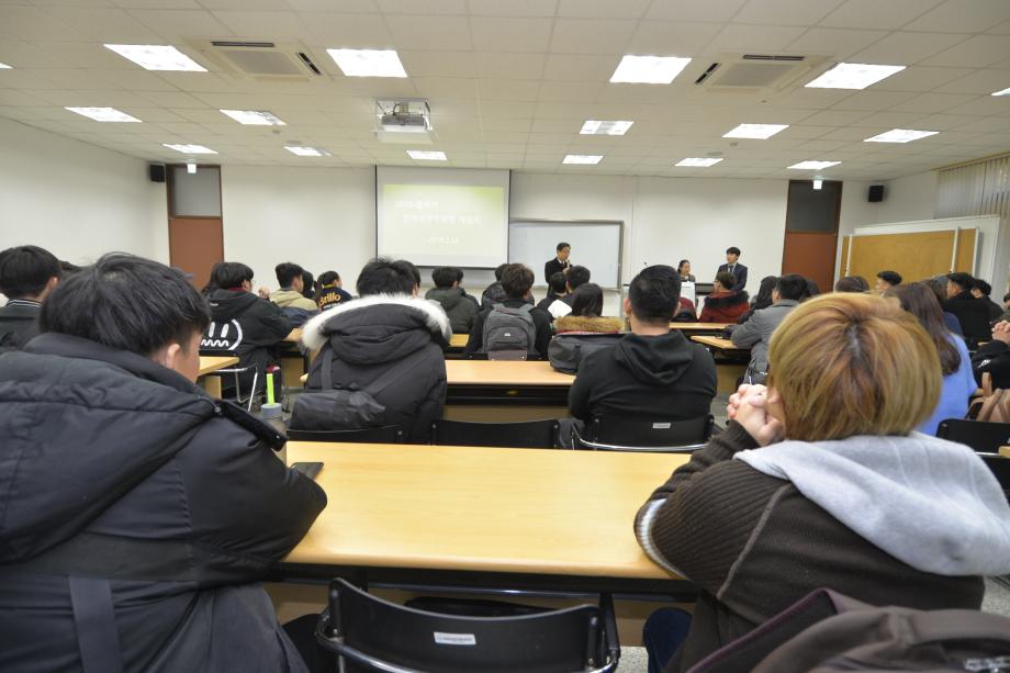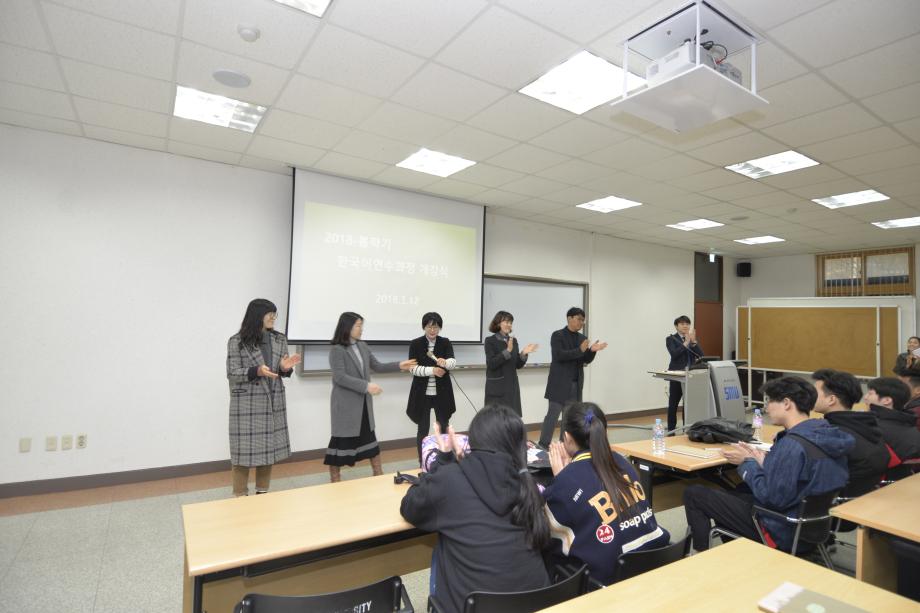본문 시작 2018 봄학기 한국어 연수과정 개강식 국제교육원 5519 2018-03-12 03월 12일 국제교육원에서는 2018 봄학기 개강식을 진행하였습니다. 학생들의 한층 밝아진 표정을 통해서 성큼 다가온 봄기운을 느낄 수 있었습니다. 목록 이전2017년 겨울학기 한국어 연수과정 수료식 다음 2018-1 외국인 유학생 조기적응 프로그램 담당부서 : 국제교육원 담당자 : - 연락처 : 043-649-1185 최종수정일 : 2024-10-26 만족도조사 만족도 조사 이 페이지에서 제공하는 정보에 대하여 만족하시나요? 매우만족 만족 보통 불만족 매우불만족