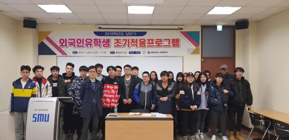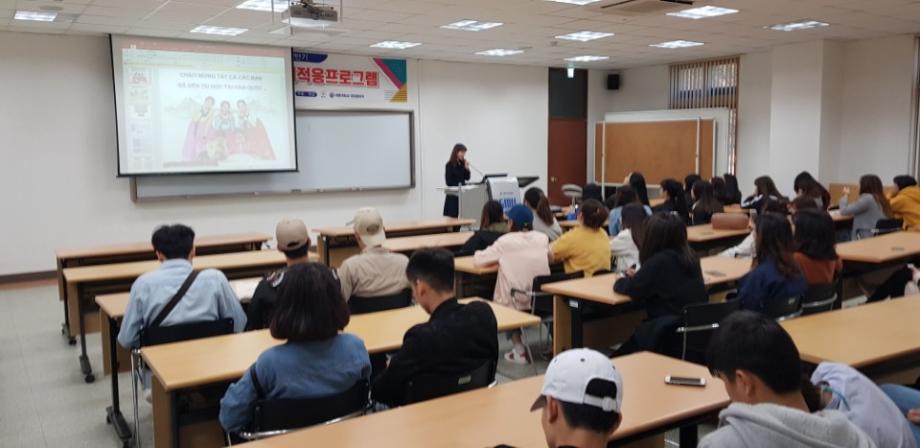 본문 시작 2018-1 외국인 유학생 조기적응 프로그램 국제교육원 6026 2018-03-14 03월 14일 법무부에서 주관하는 입국 초기의 외국인에게 필요한 정보를 제공하는 조기적응 프로그램을 진행하였습니다. 본 교육에서는 필수적인 생활정보, 법률/제도 등 을 알려주어 보다 편한 한국 생활을 영위할 수 있도록 도움을 주는데 목적이 있습니다. 목록 이전2018 봄학기 한국어 연수과정 개강식 다음 2018-1 외국인 유학생 간담회 담당부서 : 국제교육원 담당자 : - 연락처 : 043-649-1185 최종수정일 : 2024-10-26 만족도조사 만족도 조사 이 페이지에서 제공하는 정보에 대하여 만족하시나요? 매우만족 만족 보통 불만족 매우불만족