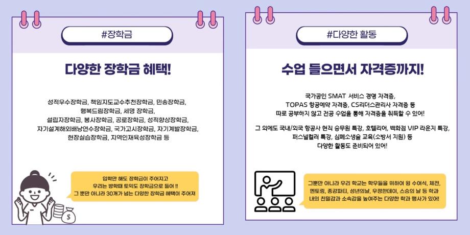 모두 내년에 재학생들의 만족도가 높은 세명대학교 항공서비스학과에서 꼭 만날 수 있길 바라겠습니다 🤗