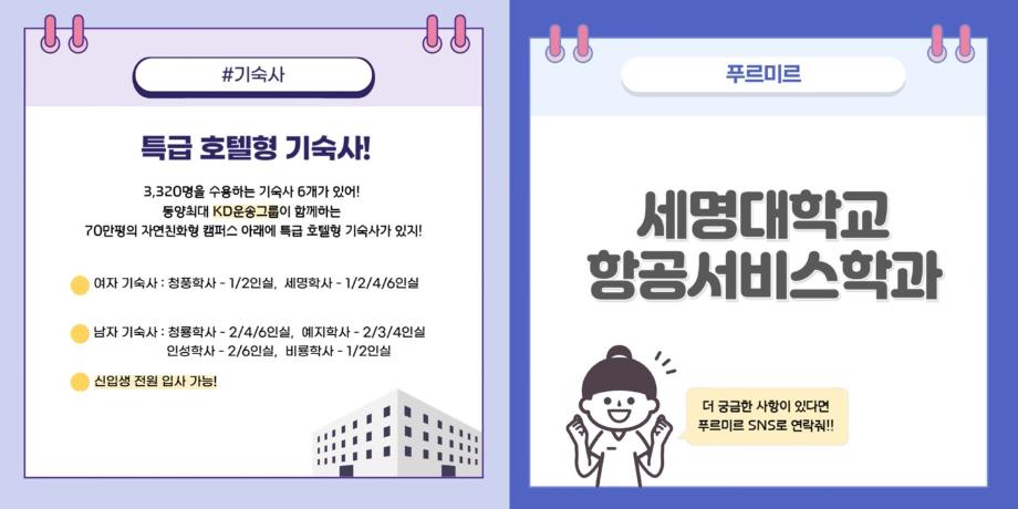 안녕하십니까 세명대학교 항공서비스학과 온라인 홍보국 💙푸르미르💙입니다