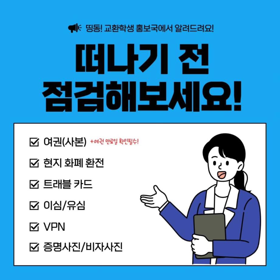 본문 시작 홈으로 커뮤니티 학과소개 입학정보 교과과정 커뮤니티 홈페이지가이드 포토갤러리 SNS 소통 공간 포토갤러리 공지사항 동아리 포토갤러리 페이스북 트위터 프린트 교환학생 체크리스트 항공서비스학과 4190 2025-08-12 안녕하십니까 세명대학교 항공서비스학과 온라인 홍보국 💙푸르미르💙입니다. 교환학생을 가기전 현지에서 꼭 필요한 물건들을 체크해야겠죠?😁 꼭 필요한 물품들을 정리해보았으니 많은 도움이 되길 바랍니다 ! 소중한 꿈을 품고 그 누구보다 높이 오를 여러분을 저희 "푸르미르" 가 항상 응원하겠습니다 ✈💙 궁금한 사항이 있으시다면 언제든지 SNS로 연락 주십시오 💬 #세명대학교 #항공서비스학과 #세명대 #항공과 #푸르미르 #교환학생 목록 이전💙에어로케이 객실승무원 취업💙 다음 🧡제주항공 객실승무원 취업🧡