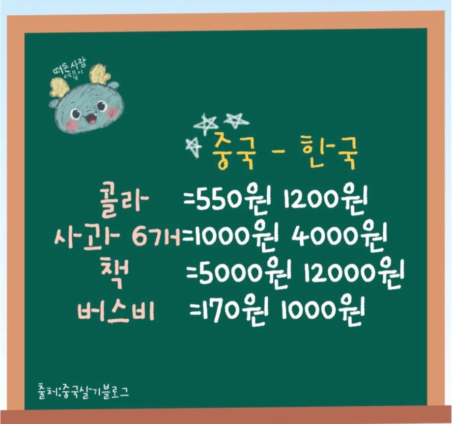 중국과 한국의 물가를 비교한 교환학생 카드뉴스를 준비했습니다📊