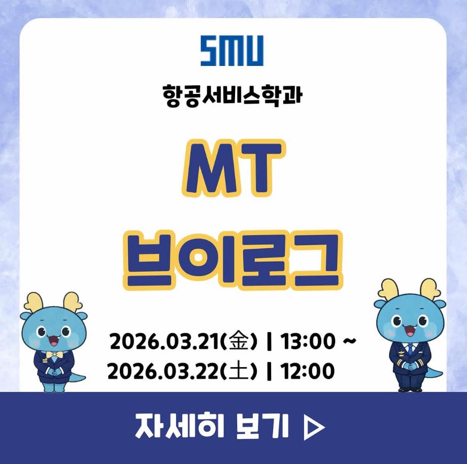 안녕하십니까 세명대학교 항공서비스학과 온라인 홍보국 💙푸르미르💙입니다.