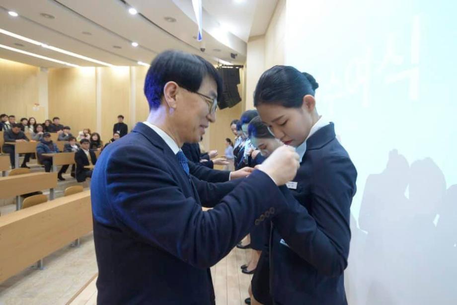 윙수여식에는 항공서비스학과 학부모님들과 총장님, 교수님들께서 신입생들에게 윙 배지를 달아주며 대학생활 동안 꿈을 위해 정진할 것을 격려해주셨습니다.