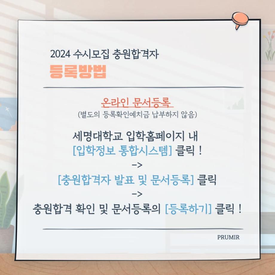 온라인 문서등록을 통해 등록이 가능하며 좀 더 자세한 사항은 세명대학교 입학홈페이지를 통해 확인하실 수 있습니다 ☑️