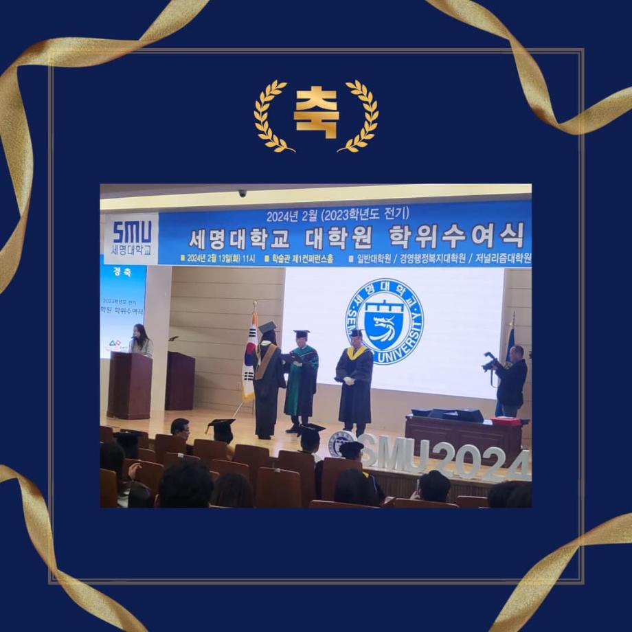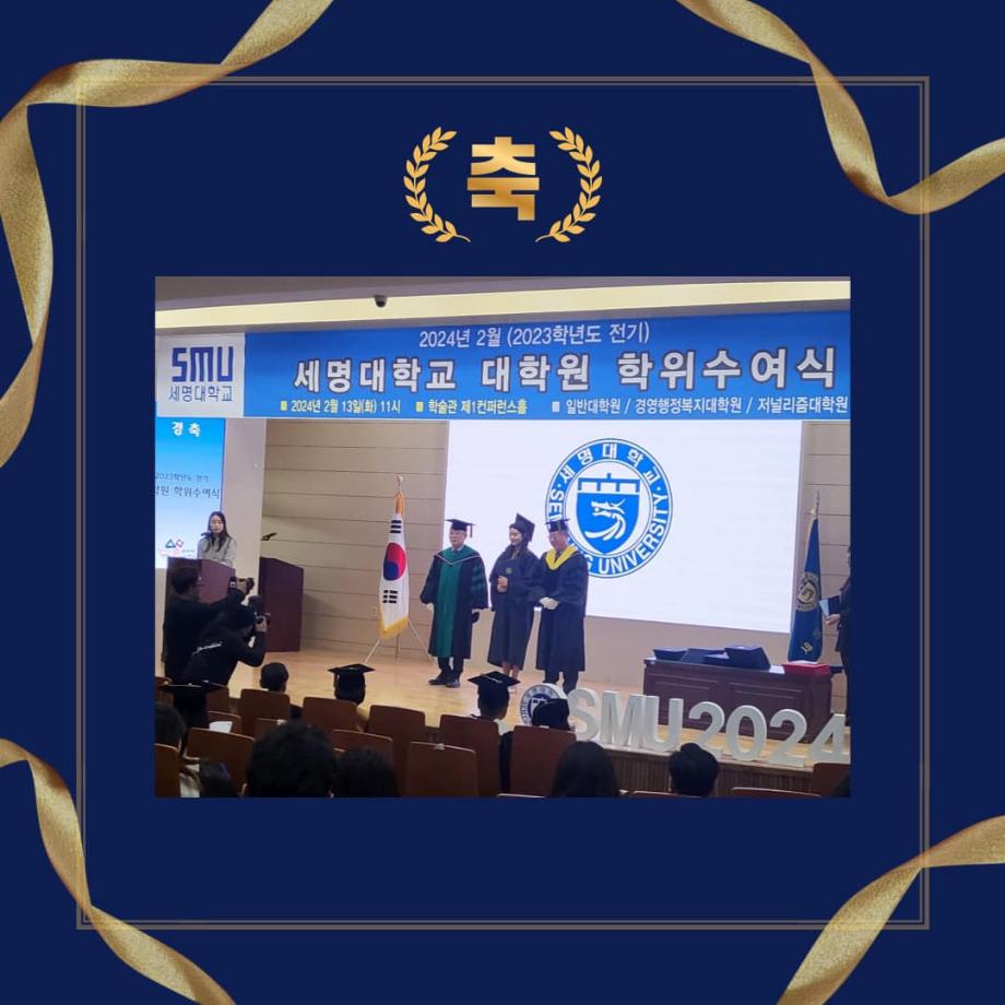 지난 2월 13일 세명대학교 대학원 학위수여식이 진행되었습니다🎊