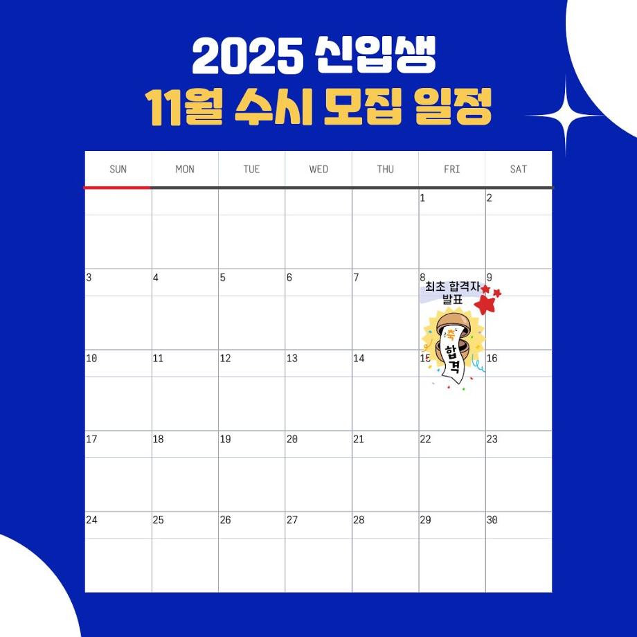 ➡️수시 원서접수: 09.09(월)09:00 ~ 09.13(금)21:00까지