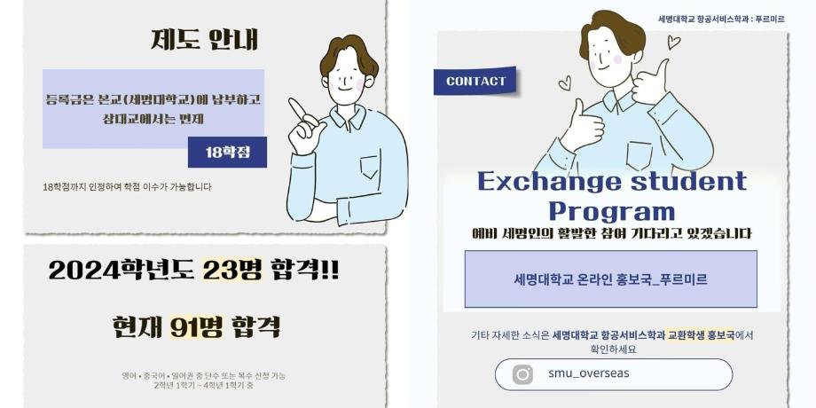 🔍 페이스북 : 검색창에 ”세명대학교 항공서비스학과 푸르미르“ 검색