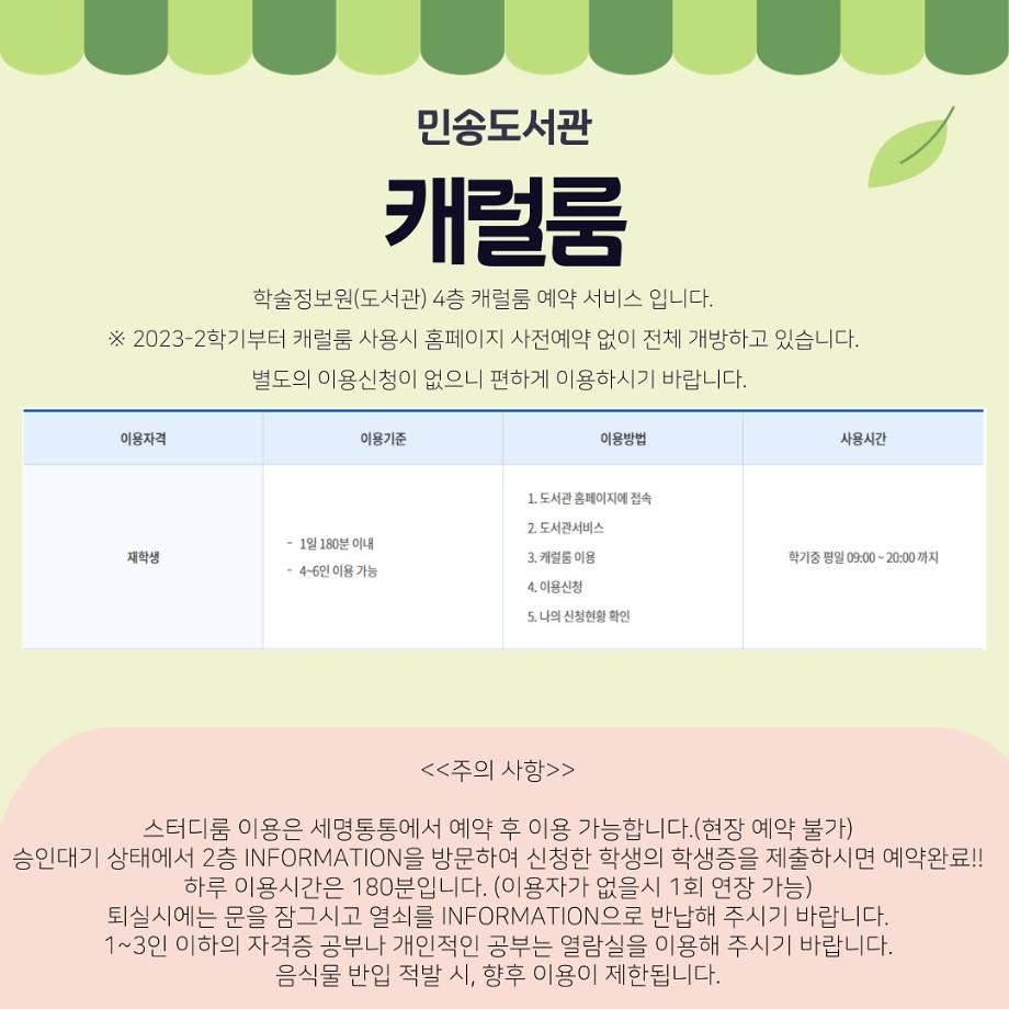 더 자세한 사항은 세명대학교 민송도서관 홈페이지에서 확인 가능합니다!🙌🏻