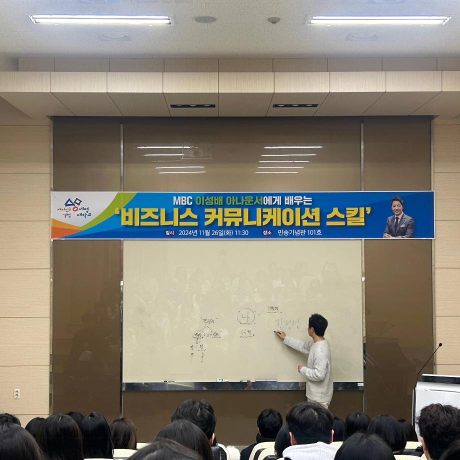 지난 11월 26일 민송기념관에서 ‘비즈니스 커뮤니케이션 스킬‘ 특강이 진행되었습니다! 이번 특강은 특별히 ✨ MBC 이성배 아나운서님께서 함께해 주셨습니다
