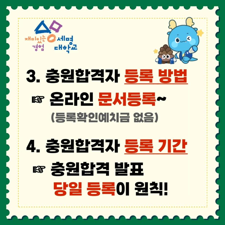 충원합격 발표 당일에 등록해야합니다!
