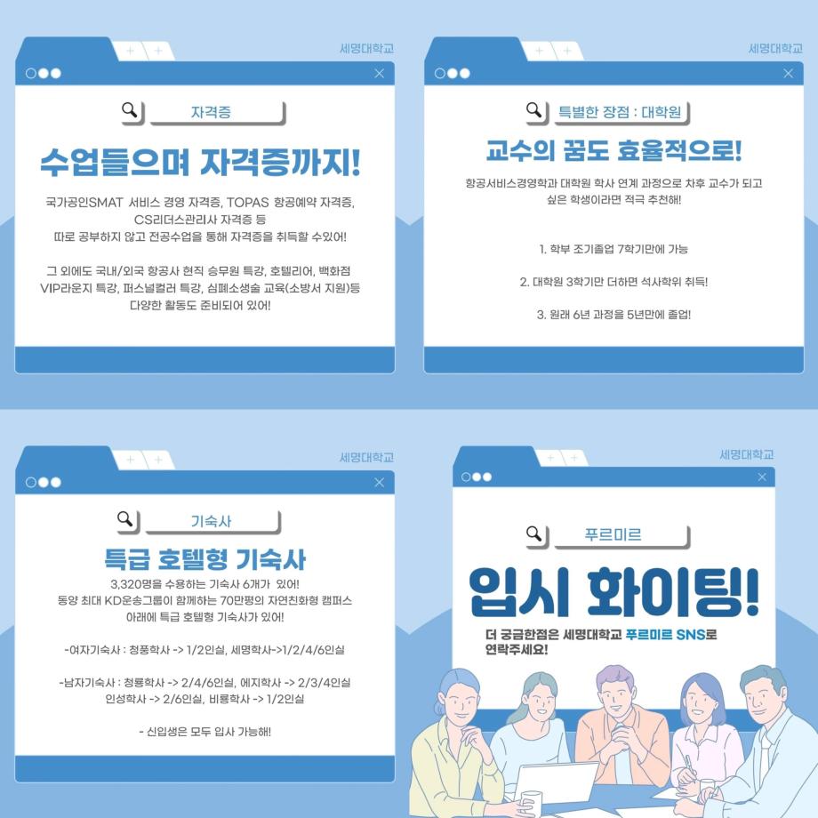 안녕하십니까 세명대학교 항공서비스학과 온라인 홍 보국 🩵푸르미르🩵입니다