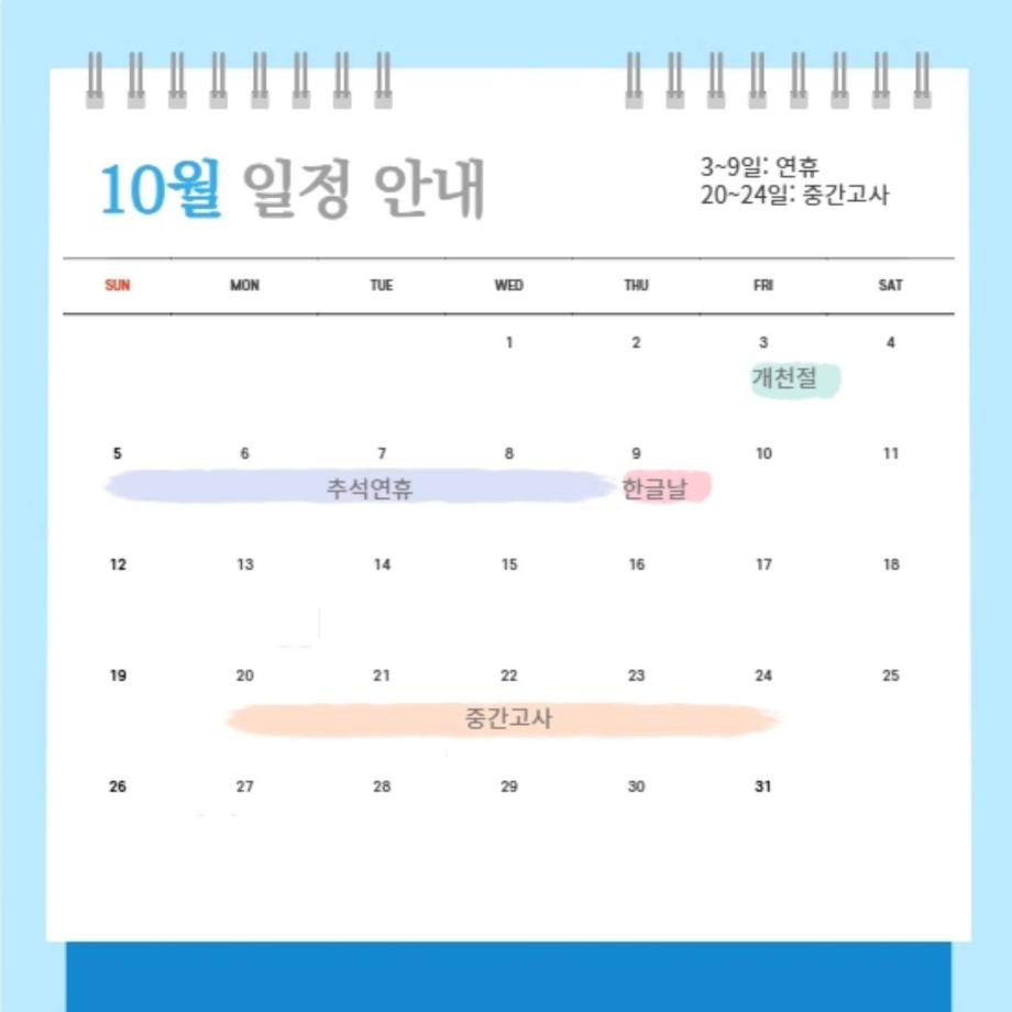 본문 시작 홈으로 커뮤니티 학과소개 입학정보 교과과정 커뮤니티 홈페이지가이드 포토갤러리 SNS 소통 공간 포토갤러리 공지사항 동아리 포토갤러리 페이스북 트위터 프린트 10월 다이어리 항공서비스학과 3782 2025-10-06 안녕하십니까 세명대학교 항공서비스학과 온라인 홍보국 💙푸르미르💙입니다. 10월에는 추석연휴와 중간고사가 있습니다! 확인하시고 일정에 착오 없으시길 바라겠습니다 😊 즐거운 연휴 보내세요🙇♂️ 소중한 꿈을 품고 그 누구보다 높이 오를 여러분을 저희 "푸르미르" 가 항상 응원하겠습니다 ✈💙 궁금한 사항이 있으시다면 언제든지 SNS로 연락 주십시오 💬 #세명대학교 #항공서비스학과 #세명대 #항공과 #푸르미르 #다이어리 목록 다음 제주항공 에듀윙 Advanced class 다음 가을 맞이 일상 사진