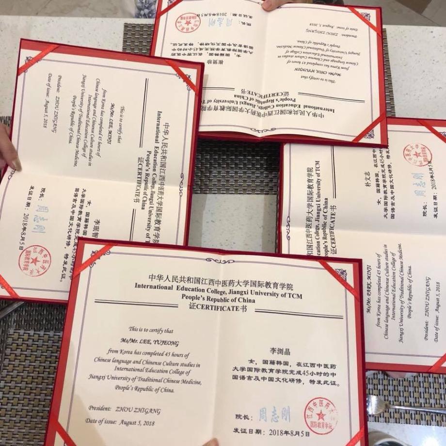 오후에는 강서중의약대학에서 준비해주신 수료식 및 환송식을 했습니다. 동기들 이름이 한 명씩 호명되어 수료증💌을 받고 난창에서의 어학연수를 성공적으로 마무리 지었습니다.