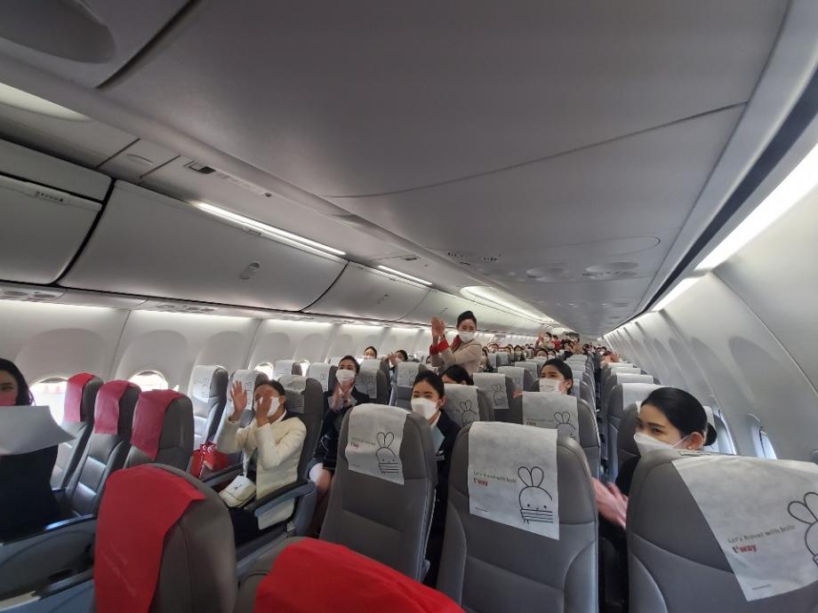 이 프로그램을 통해 항공서비스학과 학생들은 객실브리핑, 기내방송, 기내식 서비스, 유상판매, 이착륙 준비 등을 절차대로 서비스해 보는 시간을 가졌습니다.
