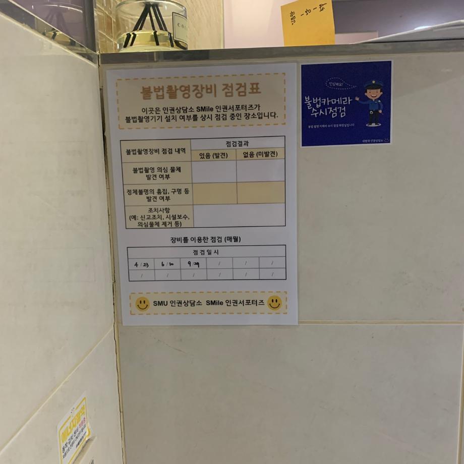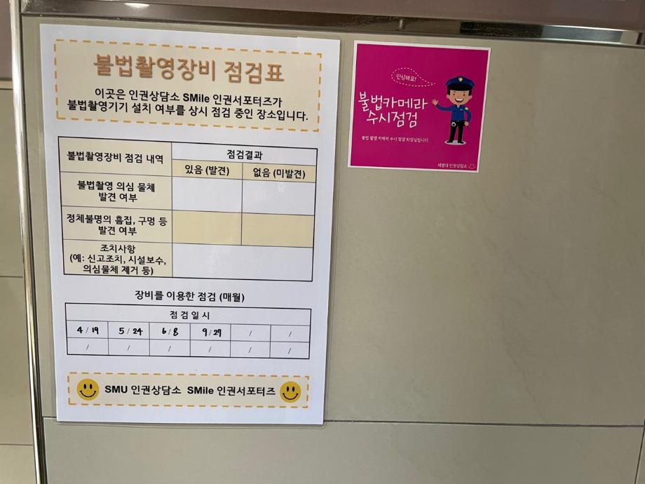 본문 시작 2021-2 불법카메라 점검표 부착 CHARM케어상담센터 3446 2021-10-27 - 목록 이전2021-2 불법카메라점검표 부착관련 준비 다음 11월 불법카메라 정기점검 진행(캡스) 담당부서 : CHARM케어상담센터 담당자 : - 연락처 : 043-649-1789 최종수정일 : 2024-10-26 만족도조사 만족도 조사 이 페이지에서 제공하는 정보에 대하여 만족하시나요? 매우만족 만족 보통 불만족 매우불만족