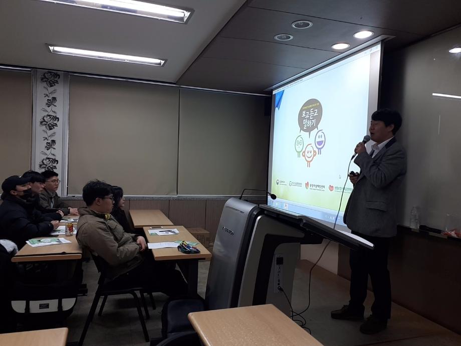 본문 시작 2019학년도 건강상담의 날 특강 "보고·듣고·말하기 교육" CHARM케어센터 4236 2019-04-10 2019학년도 1학기 건강상담의 날 특강 "보고·듣고·말하기 교육" 대상 : 사회복지학과 학생들 일시 : 2019년 4월 10일(수) 10:00~12:30 장소 : 사회과학관 113호 강사 : 제천시 정신건강복지센터 이용복 사회복지사 목록 이전[2019학년도 4월 건강상담의 날 특강 "보고·듣고·말하기 교육" ] 다음 2019학년도 5월 건강상담의 날 특강 "보고·듣고·말하기 교육" 담당부서 : CHARM케어상담센터 담당자 : - 연락처 : 043-649-1789 최종수정일 : 2024-10-26 만족도조사 만족도 조사 이 페이지에서 제공하는 정보에 대하여 만족하시나요? 매우만족 만족 보통 불만족 매우불만족