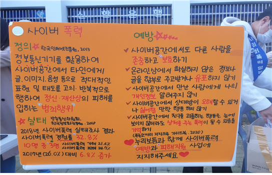 본문 시작 2020학년도 사이버폭력 예방 캠페인 CHARM케어상담센터 4471 2020-10-28 사회복지학과 학생들과 함께 목록 이전2020 상호 교류 협력을 위한 협약식 다음 2020학년도 불법카메라 10월 정기 점검 담당부서 : CHARM케어상담센터 담당자 : - 연락처 : 043-649-1789 최종수정일 : 2024-10-26 만족도조사 만족도 조사 이 페이지에서 제공하는 정보에 대하여 만족하시나요? 매우만족 만족 보통 불만족 매우불만족