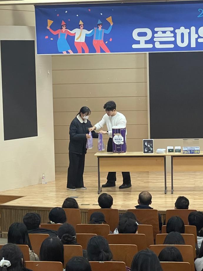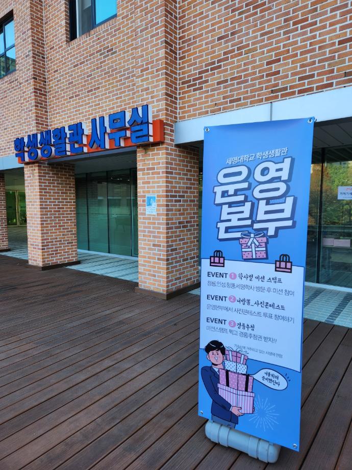 본문 시작 2023학년도 하반기 오픈하우스 진행! 학생생활관 3525 2023-12-01 2023학년도 하반기 오픈하우스 진행! 학사별 미션 후 모은 스탬프 쿠폰으로 경품추첨권 획득!! 목록 이전2023학년도 오픈하우스 "세명학사 쪽지를 찾아라" 미션 진행! 다음 2025학년도 2학기 심폐소생술 교육 실시 담당부서 : 학생생활관 담당자 : - 연락처 : 043-649-7202 최종수정일 : 2024-10-26 만족도조사 만족도 조사 이 페이지에서 제공하는 정보에 대하여 만족하시나요? 매우만족 만족 보통 불만족 매우불만족