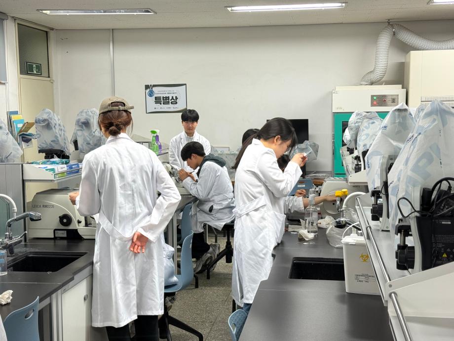 본문 시작 박절 임상병리학과 1055 2025-04-28 파라핀 포매 및 트리밍 해놓은 블럭을 이용하여 박절을 진행하였습니다 목록 이전몰드 청소 다음 염색 이론 설명 및 Stock 제작법 설명 담당부서 : 임상병리학과 담당자 : - 연락처 : 043-649-1537 최종수정일 : 2024-10-26 만족도조사 만족도 조사 이 페이지에서 제공하는 정보에 대하여 만족하시나요? 매우만족 만족 보통 불만족 매우불만족