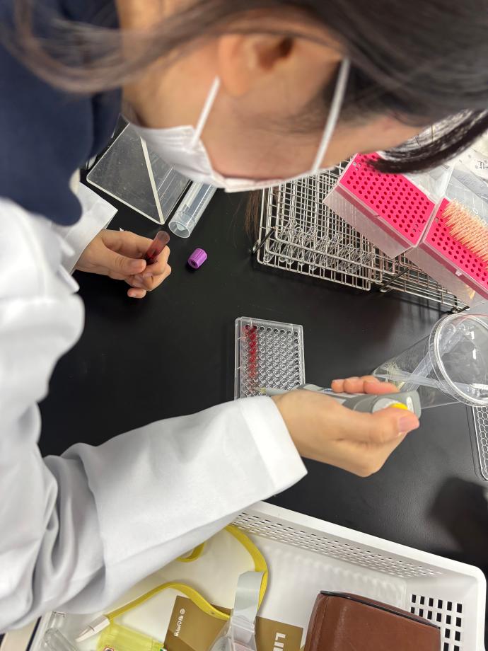 본문 시작 혈구계산판 임상병리학과 883 2025-11-19 적혈구와 백혈구가 잘 보이는 희석 배수와 계단 희석, 두 가지 방법으로 카운트를 진행하였습니다. 이를 통해 계단 희석 방법을 숙달하고 보다 정확한 카운트를 수행할 수 있으며, 두 방법 간의 오차 정도도 확인할 수 있었습니다 목록 이전CBC 검사 다음 ESR 검사 담당부서 : 임상병리학과 담당자 : - 연락처 : 043-649-1537 최종수정일 : 2024-10-26 만족도조사 만족도 조사 이 페이지에서 제공하는 정보에 대하여 만족하시나요? 매우만족 만족 보통 불만족 매우불만족