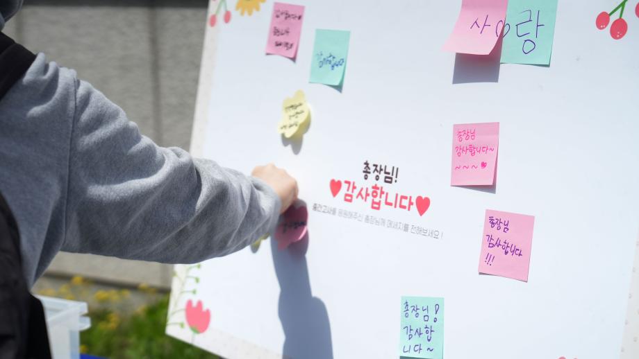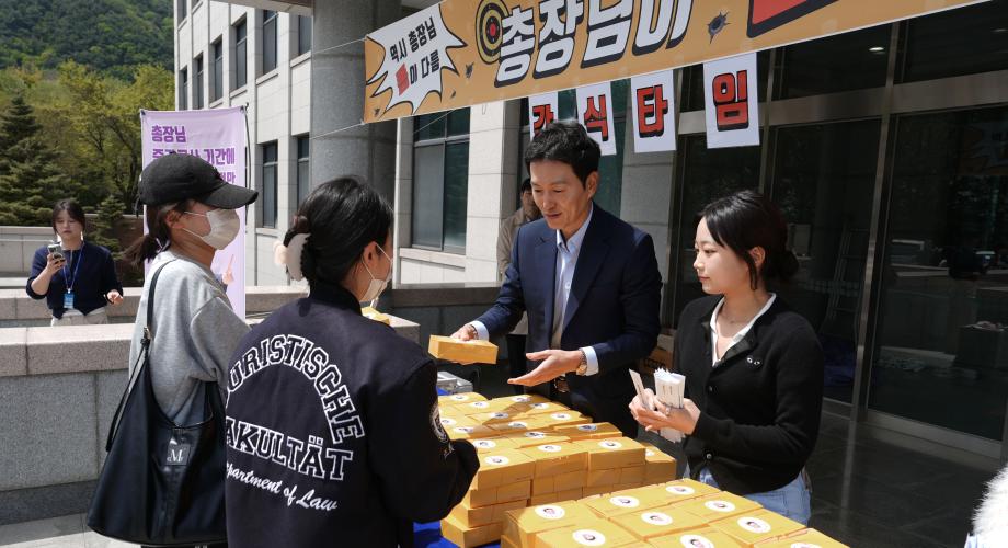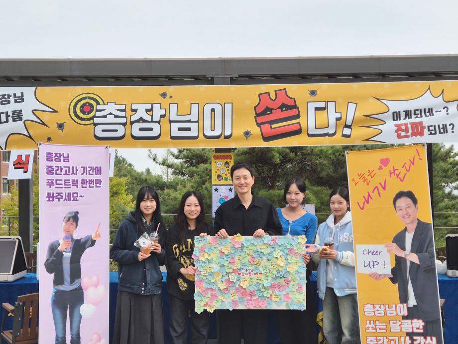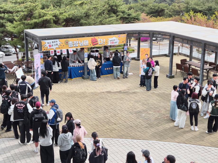 본문 시작 Photo SMU 세명소개 입학/취업 대학/대학원 학사지원 대학생활 연구/산학 기관/시설 SMU Story 소통·공감 학교기업 홈페이지가이드 학생활동 News@SMU 공지사항 보도자료 Photo SMU Media SMU 민송백일장 해카톤 경진대회 학생활동 페이스북 트위터 프린트 총장님이 쏜다! 중간고사 간식 나눔 행사 홍보센터 34 2026-04-21 총장님이 쏜다! 중간고사 간식 나눔 행사 목록 이전세명대학교 외국인유학생 한국 문화체험 담당부서 : 홍보센터 담당자 : 홍보센터 연락처 : 043-649-1175 최종수정일 : 2024-10-26 만족도조사 만족도 조사 이 페이지에서 제공하는 정보에 대하여 만족하시나요? 매우만족 만족 보통 불만족 매우불만족