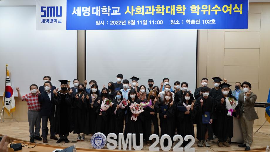 본문 시작 Photo SMU 세명소개 입학/취업 대학/대학원 학사지원 대학생활 연구/산학 기관/시설 SMU Story 소통·공감 학교기업 홈페이지가이드 학생활동 News@SMU 공지사항 보도자료 Photo SMU Media SMU 민송백일장 해카톤 경진대회 학생활동 페이스북 트위터 프린트 2022학년도 후기 사회과학대학 학위수여식 홍보센터 5091 2022-08-11 2022학년도 후기 사회과학대학 학위수여식 목록 이전2022학년도 스마트IT학부 SM 스마트 드론 코딩 경진대회 다음 2022학년도 세명진로 Festival 하계주간 담당부서 : 홍보센터 담당자 : 홍보센터 연락처 : 043-649-1175 최종수정일 : 2024-10-26 만족도조사 만족도 조사 이 페이지에서 제공하는 정보에 대하여 만족하시나요? 매우만족 만족 보통 불만족 매우불만족