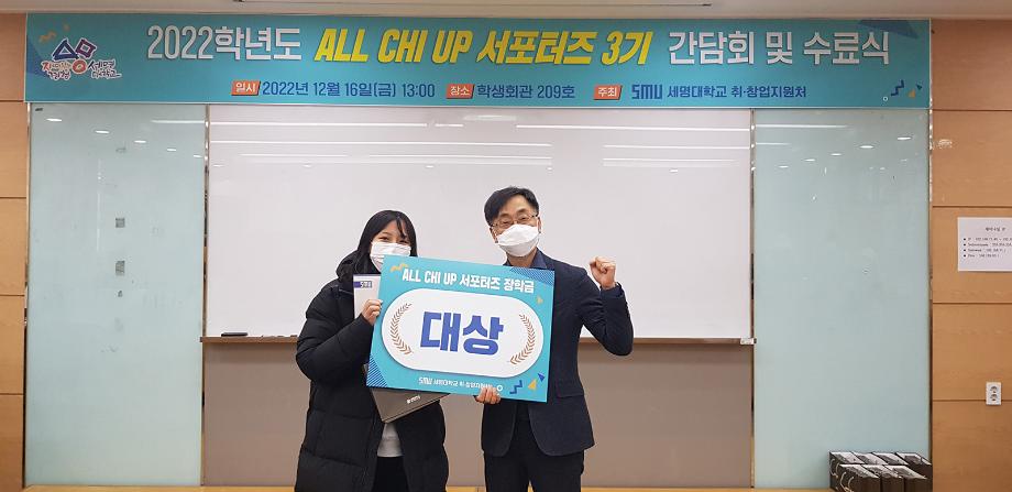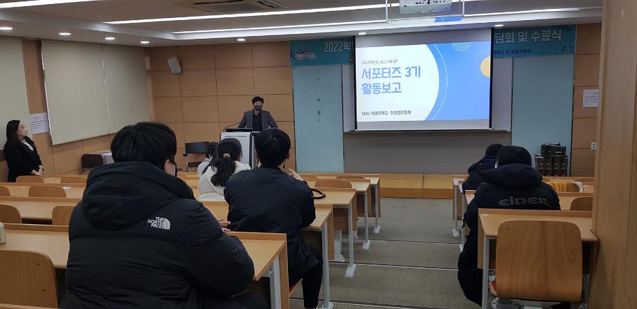 본문 시작 Photo SMU 세명소개 입학/취업 대학/대학원 학사지원 대학생활 연구/산학 기관/시설 SMU Story 소통·공감 학교기업 홈페이지가이드 학생활동 News@SMU 공지사항 보도자료 Photo SMU Media SMU 민송백일장 해카톤 경진대회 학생활동 페이스북 트위터 프린트 2022학년도 'ALL CHI UP 서포터즈 3기' 수료식 홍보센터 10891 2022-12-16 2022학년도 'ALL CHI UP 서포터즈 3기' 수료식 목록 이전2022학년도 연구역량 강화 세미나 : 엉뚱한 연구 다음 세명대 학생회, 독거노인의 따뜻한 겨울나기 지원 담당부서 : 홍보센터 담당자 : 홍보센터 연락처 : 043-649-1175 최종수정일 : 2024-10-26 만족도조사 만족도 조사 이 페이지에서 제공하는 정보에 대하여 만족하시나요? 매우만족 만족 보통 불만족 매우불만족