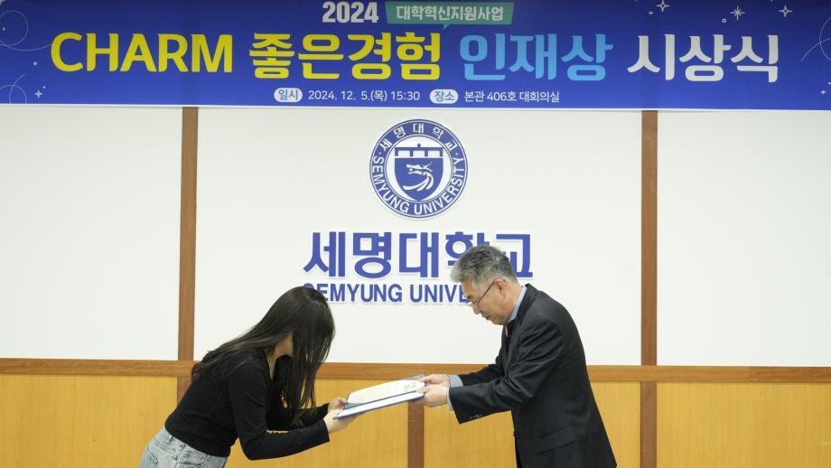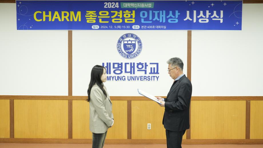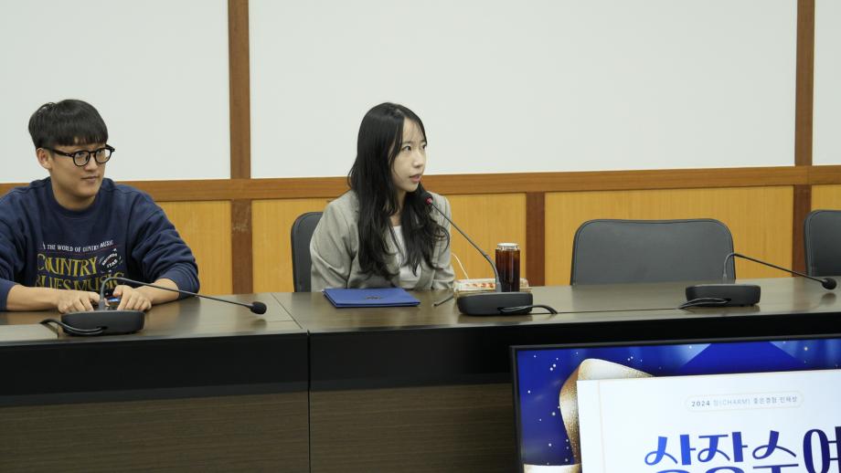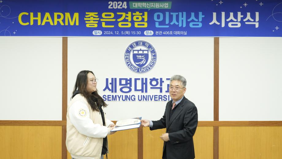 본문 시작 Photo SMU 세명소개 입학/취업 대학/대학원 학사지원 대학생활 연구/산학 기관/시설 SMU Story 소통·공감 학교기업 홈페이지가이드 학생활동 News@SMU 공지사항 보도자료 Photo SMU Media SMU 민송백일장 해카톤 경진대회 학생활동 페이스북 트위터 프린트 CHARM 좋은경험 인재상 시상식 홍보센터 4048 2024-12-05 CHARM 좋은경험 인재상 시상식 목록 이전제3회 학생위원회 최종보고회 다음 2025 신입생 오리엔테이션 '꿈설계학기' 담당부서 : 홍보센터 담당자 : 홍보센터 연락처 : 043-649-1175 최종수정일 : 2024-10-26 만족도조사 만족도 조사 이 페이지에서 제공하는 정보에 대하여 만족하시나요? 매우만족 만족 보통 불만족 매우불만족