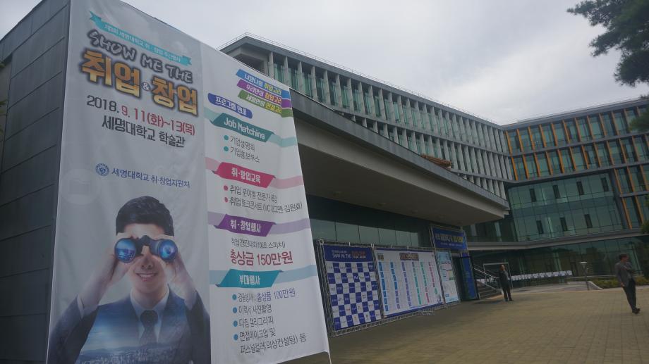 본문 시작 Photo SMU 세명소개 입학/취업 대학/대학원 학사지원 대학생활 연구/산학 기관/시설 SMU Story 소통·공감 학교기업 홈페이지가이드 학생활동 News@SMU 공지사항 보도자료 Photo SMU Media SMU 민송백일장 해카톤 경진대회 학생활동 페이스북 트위터 프린트 제3회 세명대학교 취창업주간행사 기획실 7074 2018-09-13 제3회 세명대학교 취창업주간행사 세명대학교 재학생의 취업과 창업 역량강화를 위한 행사이다. 취업과 창업을 위한 특강 및 설명회가 현장에서 진행되며 실제 기업 인사 담당자가 참가하는 채용부스도 운영한다. 그 외에도 면접 메이크업, 이력서 사진촬영, 인적성 검사 등 다채로운 부대행사도 지원한다. 목록 이전제28회 청룡축전 다음 중국어 시 낭송 대회 담당부서 : 홍보센터 담당자 : 홍보센터 연락처 : 043-649-1175 최종수정일 : 2024-10-26 만족도조사 만족도 조사 이 페이지에서 제공하는 정보에 대하여 만족하시나요? 매우만족 만족 보통 불만족 매우불만족