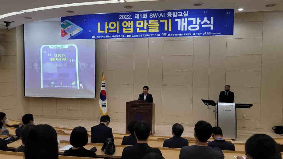 세명대학교 IT엔지니어링대학은 제천시인재육성재단(이사장 지중현)은 2022. 7. 9. 세명대학교 학술관에서 ‘2022년 제1회 SW․AI 융합교실(나의 앱 만들기)’ 개강식을 개최했다.
