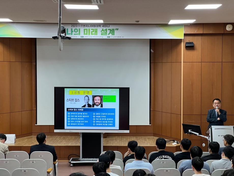 본문 시작 홈으로 커뮤니티 대학소개 학과소개 입학안내 커뮤니티 홈페이지가이드 포토갤러리 대학소식 학과소식 자료실 포토갤러리 포토갤러리 페이스북 트위터 프린트 2023-1학기 학생과 함께하는 세미나 개최 IT엔지니어링대학 2639 2023-06-15 IT엔지니어링대학에서는 재학생들의 학습역량 강화 및 대학 생활 만족도 제고를 위하여 '학생과 함께하는 세미나'를 2023년 6월 14일(수) 공학관 123호에서 개최하였다. 이번 세미나는 '나의 미래 설계 (성공하는 삶을 위하여)' 주제로 황락훈(전기공학과) 교수님이 발표를 하였으며, 학생들에게 경험담과 앞으로의 미래 사회에서 공과대학 학생으로서의 비전을 알 수 있는 좋은 시간이 되 목록 이전제1회 청소년 창의융합(AI-STEAM)행사 참여 다음 2023-1학기 학생과 함께하는 세미나 개최 담당부서 : AI융합대학 담당자 : - 연락처 : 043-649-7422 최종수정일 : 2024-10-26 만족도조사 만족도 조사 이 페이지에서 제공하는 정보에 대하여 만족하시나요? 매우만족 만족 보통 불만족 매우불만족