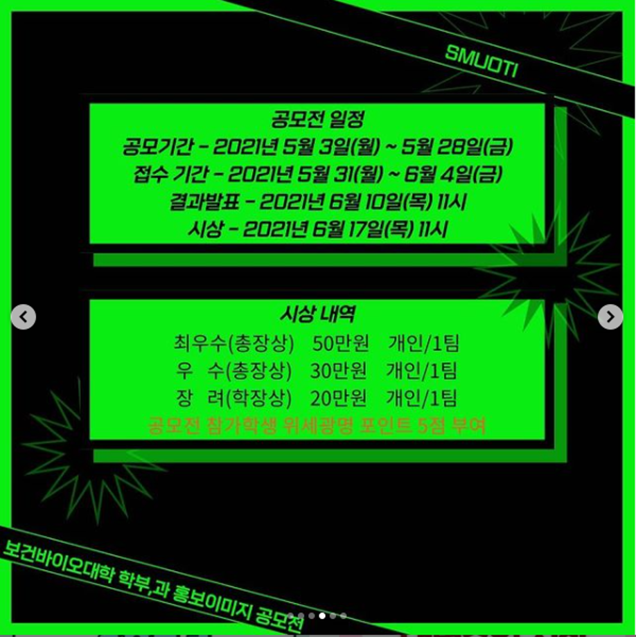우리 학과, 학부를 알리는 좋은 기회에 참여하고 시상에 따른 상금도 준비되어 있다고 하니 공모 기간에 늦지 않게 제출해서 수상하면👍👍👍😍😍
