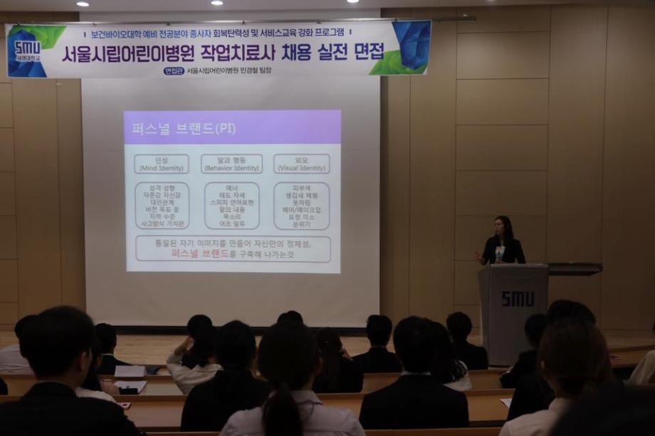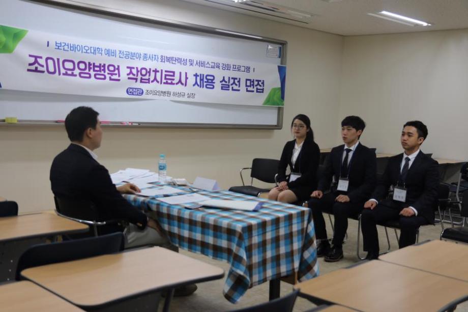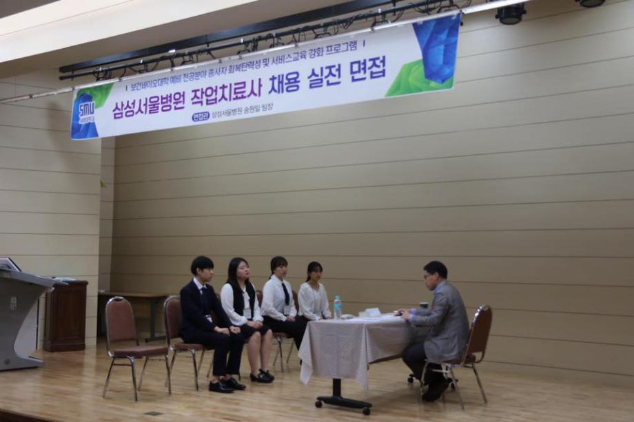 세명대 작업치료학과 병원 취업대비 실전 모의 면접이5월 19일 (토)요일 4학년 대상으로 진행되었고, 3학년 학우분들도 참관하였습니다. 면접특강 및 이미지메이킹 강의를 듣고난 후 💙삼성서울병원, 서울특별시 어린이 병원, 조이요양병원, 성북서울요양재활병원💙의 실무진과 실전면접을 실시하였습니다 . 이날 3학년 학우들은 4학년 선배님들의 면접을 참관하면서 많은 것을 배워갈 수 있었고 4학년 선배님들은 실전면접을 통해 자신의 부족한 부분을 다시 고쳐나갈수있는 소중한 시간이되었습니다