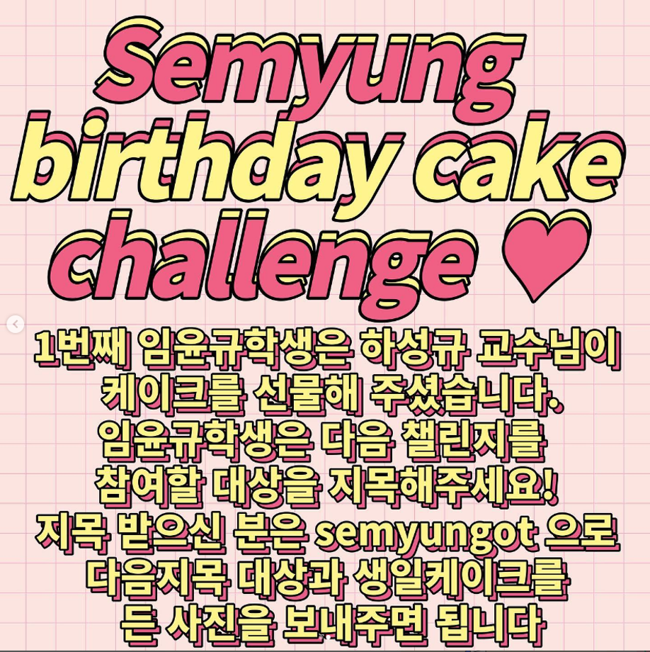 본문 시작 홈으로 커뮤니티 학과소개 진로 및 취업 학과과정 커뮤니티 SNS 홈페이지가이드 학과 소식 및 행사 학과공지 학과 소식 및 행사 대학생활 엿보기 어쩌다 출근 챌린지 학생회 동아리 통학버스 시간표 학과 소식 및 행사 페이스북 트위터 프린트 semyung happy birthday cake challenge!! 작업치료학과 2071 2022-05-24 생일 케익을 받은 사람이 다음번 생일자에게 케익을 선물( 조각케익, 초코파이도 너무 좋아요) 사진을 잘 보시면 challenge의 시그니쳐 포즈 비밀이 있습니다. 목록 이전스승의날 행사 다음 제 7회 늘픔 학술제 담당부서 : 작업치료학과 담당자 : - 연락처 : 043-649-1632 최종수정일 : 2024-10-26 만족도조사 만족도 조사 이 페이지에서 제공하는 정보에 대하여 만족하시나요? 매우만족 만족 보통 불만족 매우불만족