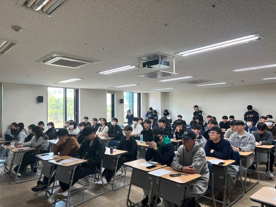 본문 시작 홈으로 커뮤니티 학과소개 교수소개 학과과정 커뮤니티 홈페이지가이드 포토갤러리 학부공지 학과일정 포토갤러리 학생회 동아리 포토갤러리 페이스북 트위터 프린트 2023 경찰학과 개강총회 경찰학과 3425 2023-03-10 3월 10일 금요일 16시, 학술관 409호에서 개강총회를 실시하였습니다. 학우분들의 즐거운 학교생활을 위해서 불편한 사항을 더 편하게 말할 수 있고, 힘든 학교 생활에서 조금 더 친밀해지고자 하는 의미로 개강총회를 실시하게 되었습니다. 개강총회에서 학과소개, 학과 동아리 소개 및 MT, 청룡체전, 성년의 날 등의 학과 행사 소개 등을 진행하였습니다. 목록 이전2022 경찰학과 MT 다음 2023 ROAD 전동킥보드 단속 캠페인 만족도조사 만족도 조사 이 페이지에서 제공하는 정보에 대하여 만족하시나요? 매우만족 만족 보통 불만족 매우불만족