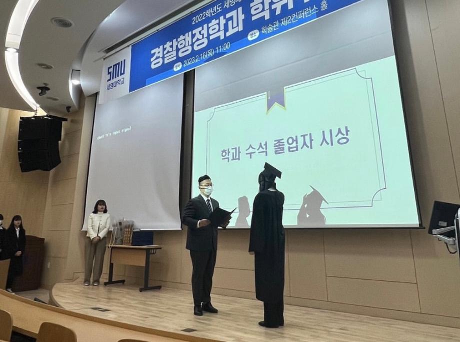 본문 시작 홈으로 커뮤니티 학과소개 교수소개 학과과정 커뮤니티 홈페이지가이드 포토갤러리 학부공지 학과일정 포토갤러리 학생회 동아리 포토갤러리 페이스북 트위터 프린트 2023 학위수여식 경찰학과 2811 2023-02-16 2022학년도 세명대학교 경찰행정학과 학위식을 2023년 2월 16일 학술관 제 2컨퍼런스 홀에서 진행하였습니다. 세명대 경찰행정학과 졸업생 여러분들의 졸업을 다시 한번 축하드리면서 졸업생 여러분들의 앞날을 응원합니다! 목록 다음 2023 꿈설계학기 OT 다음 2023학년도 경찰학과 학생회 소개 영상 만족도조사 만족도 조사 이 페이지에서 제공하는 정보에 대하여 만족하시나요? 매우만족 만족 보통 불만족 매우불만족