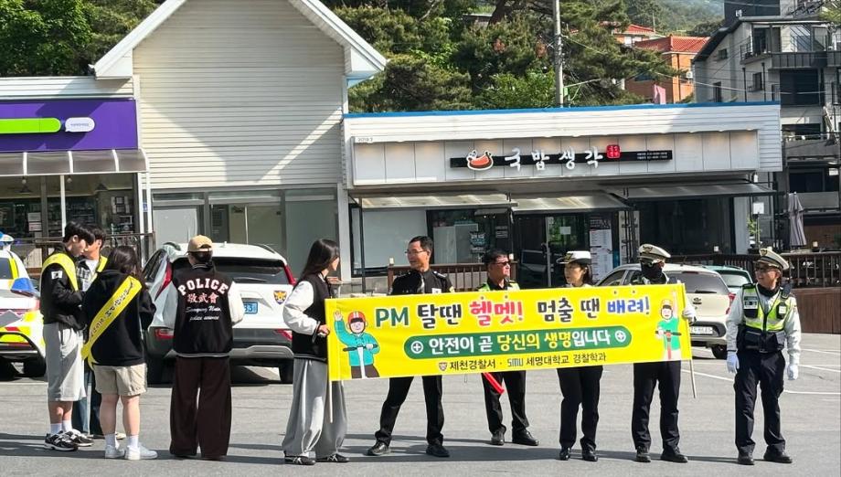본문 시작 홈으로 커뮤니티 학과소개 교수소개 학과과정 커뮤니티 홈페이지가이드 포토갤러리 학부공지 학과일정 포토갤러리 학생회 동아리 포토갤러리 페이스북 트위터 프린트 제천경찰서 합동 개인형 이동장치 안전운행 캠페인 경찰학과 1828 2025-05-22 안녕하십니까 세명대학교 경찰학과 제23대 학생회 ‘개화’입니다. 지난 5월 8일, 제천경찰서와 함께 개인형 이동장치 안전운행 캠페인을 진행하였습니다. 개인형 이동장치의 운행을 안전하게 하도록 해당 포스터 및 팜플렛 등을 세명대학교 곳곳에서 학우분께 전달하고 알리는 활동을 하였습니다. 이번 캠페인에 참여하신 모든 학우분과 경찰관분께 감사의 말씀 전해드립니다.🍀 기타 문의 사항은 연락해 주시면 답변해 드리겠습니다. 목록 이전2025 경찰학과 체전 다음 단양중학교 대상 경찰학과 전공체험 만족도조사 만족도 조사 이 페이지에서 제공하는 정보에 대하여 만족하시나요? 매우만족 만족 보통 불만족 매우불만족