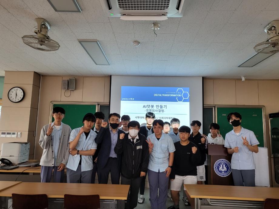 본문 시작 홈으로 커뮤니티 학과소개 학생진로 교과과정 커뮤니티 학과 SNS 홈페이지가이드 학과 갤러리 공지사항 대학원 학과 갤러리 학과 이야기 동아리 학생회 학과 갤러리 페이스북 트위터 프린트 제천고등학교 인문사회아카데미 특강 경영학과 2658 2023-05-23 제천고등학교에서 실시한 <인문사회아카데미 특강>에서 경영학과 김계수 교수님이 5월 22일(월)에 'AI챗봇 만들기-경영의사결정-' 이라는 주제로 특강을 하였습니다. 목록 이전2023학년도 회계스타K 1편 다음 2023학년도 스승의 날 행사 1편 담당부서 : 경영학과 담당자 : - 연락처 : 043-649-1766 최종수정일 : 2024-10-26 만족도조사 만족도 조사 이 페이지에서 제공하는 정보에 대하여 만족하시나요? 매우만족 만족 보통 불만족 매우불만족