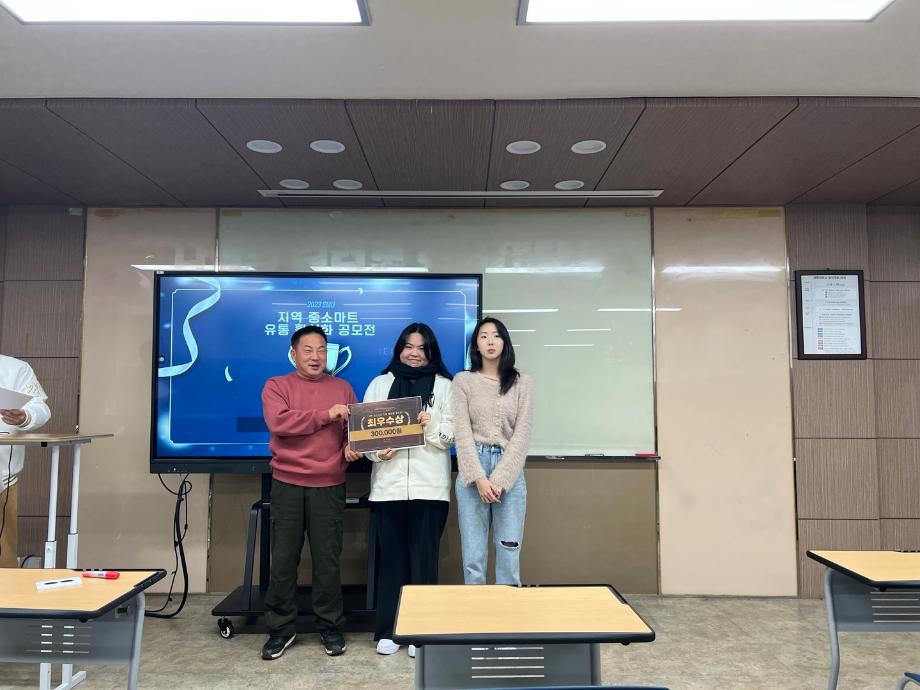 본문 시작 홈으로 커뮤니티 학과소개 학생진로 교과과정 커뮤니티 학과 SNS 홈페이지가이드 학과 갤러리 공지사항 대학원 학과 갤러리 학과 이야기 동아리 학생회 학과 갤러리 페이스북 트위터 프린트 [경영학과] 유통 활성화 공모전 경영학과 2478 2023-12-12 2023.11.29(목요일) 경영학과는 제천시 소재에 행복한 알마트 대표님과 함께 '지역 중소마트 유통 활성화 공모전'을 진행하였습니다. 목록 이전[경영학과] 부트캠프 특강 다음 [경영학과] 사업계획서 공모전 담당부서 : 경영학과 담당자 : - 연락처 : 043-649-1766 최종수정일 : 2024-10-26 만족도조사 만족도 조사 이 페이지에서 제공하는 정보에 대하여 만족하시나요? 매우만족 만족 보통 불만족 매우불만족