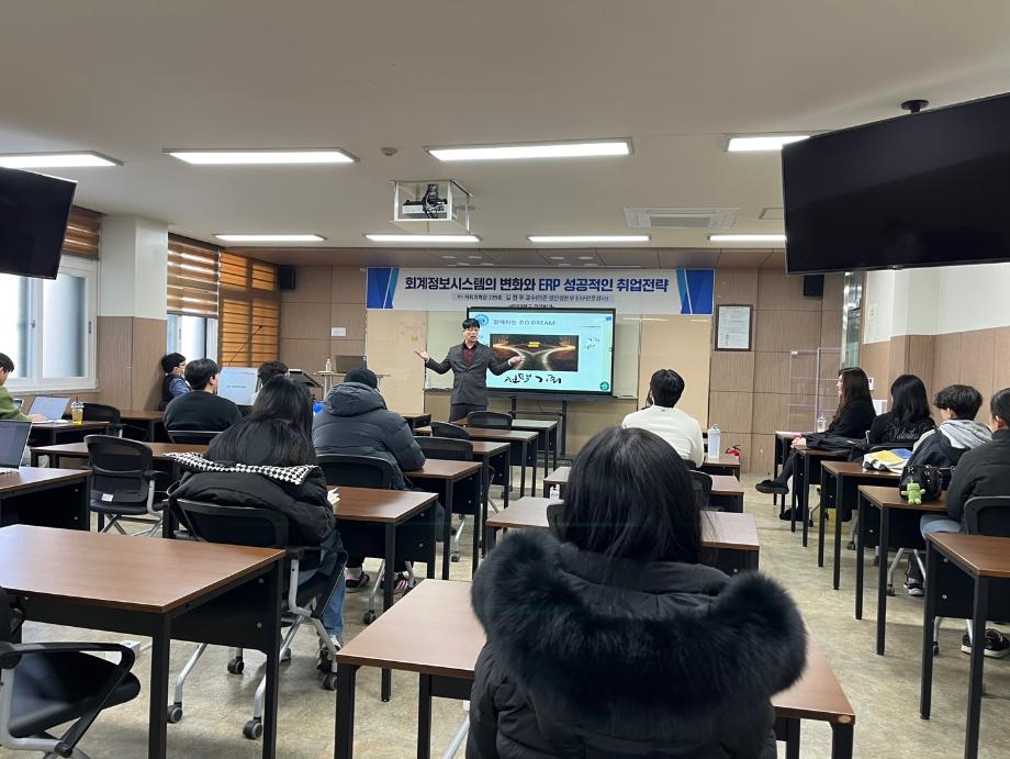 본문 시작 홈으로 커뮤니티 학과소개 학생진로 교과과정 커뮤니티 학과 SNS 홈페이지가이드 학과 갤러리 공지사항 대학원 학과 갤러리 학과 이야기 동아리 학생회 학과 갤러리 페이스북 트위터 프린트 [경영학과] ERP 성공적인 취업 전략 특강 경영학과 1811 2025-02-14 더존 생산성본부 ERP 전문 강사 김진우 교수님께서 회계정보시스템의 변화와 ERP 성공적인 취업 전략 특강을 진행하셨습니다. 취업과 진로에 많은 도움이 되는 특강으로, 참석한 학생들 모두 유익한 시간이었다고 합니다. 목록 이전[경영학과] 2024학년도 대학원 학위수여식 다음 [경영학과] 2024학년도 경영학과 학위수여식 담당부서 : 경영학과 담당자 : - 연락처 : 043-649-1766 최종수정일 : 2024-10-26 만족도조사 만족도 조사 이 페이지에서 제공하는 정보에 대하여 만족하시나요? 매우만족 만족 보통 불만족 매우불만족