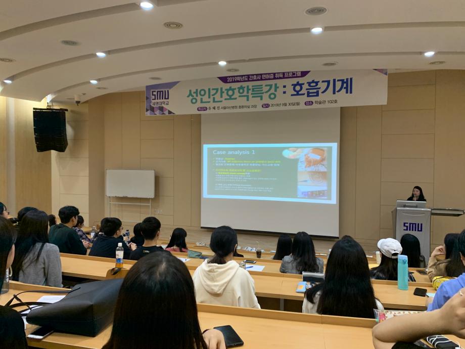 본문 시작 홈으로 학과특성화 사업 학과소개 교수소개 교육과정 학과소식 학과특성화 사업 커뮤니티 홈페이지가이드 2019년 2026년 2025년 2024년 2023년 2022년 2021년 2020년 2019년 2018년 2017년 2016년 2015년 2014년 2019년 페이스북 트위터 프린트 성인간호학특강 : 호흡기계 간호학과 7738 2019-09-30 1. 일시 : 2019년 9월 30일(월) 2. 특강자 : 서울아산병원 중환자실 유혜진 과장 3. 장소 : 학술관 102호 4. 내용 : 성인간호학 호흡기계 학습 내용 중 이해도가 낮은 인공호흡기 부분 심층 대비 목록 이전Peritoneal Dialysis Simulator Course 다음 성인간호특강 : 심혈관계 담당부서 : 간호학과 담당자 : - 연락처 : 043-649-1357 최종수정일 : 2024-10-26 만족도조사 만족도 조사 이 페이지에서 제공하는 정보에 대하여 만족하시나요? 매우만족 만족 보통 불만족 매우불만족