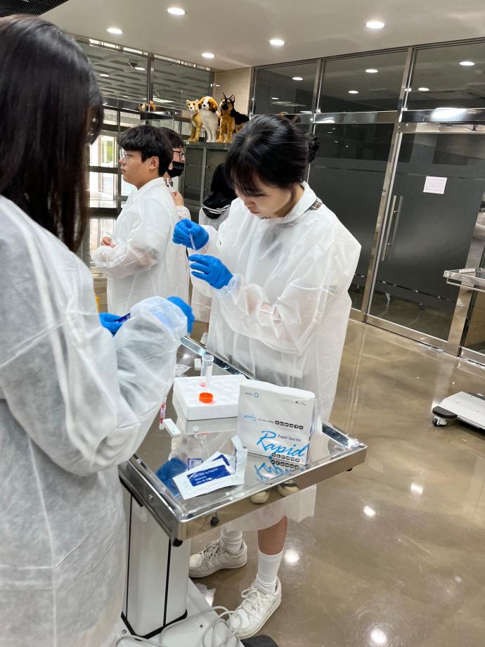 본문 시작 홈으로 학과게시판 학과소개 교육과정 학과게시판 관련사이트 홈페이지가이드 포토갤러리 학과소식 포토갤러리 동아리 소개 포토갤러리 페이스북 트위터 프린트 단양고등학교 동물바이오헬스학과 전공체험 동물바이오헬스학과 2023 2023-06-09 2023년 5월26일 단양고등학교 3학년 학생들이 동물바이오헬스학과에서 "바이러스 실험실 체험"이라는 주제로 체험과 토론을 진행했습니다. 많은 학생들이 실습 체험을 하면서 신속간이진단킷트의 원리를 경험하는 시간이 되었습니다 목록 이전동물바이오헬스학과 제천제일고등학교 전공체험(프리칼리지) 다음 제6회 보건바이오대학 학과홍보 UCC 공모전 수상 담당부서 : 동물보건학과 담당자 : - 연락처 : 043-649-1627 최종수정일 : 2024-10-26 만족도조사 만족도 조사 이 페이지에서 제공하는 정보에 대하여 만족하시나요? 매우만족 만족 보통 불만족 매우불만족