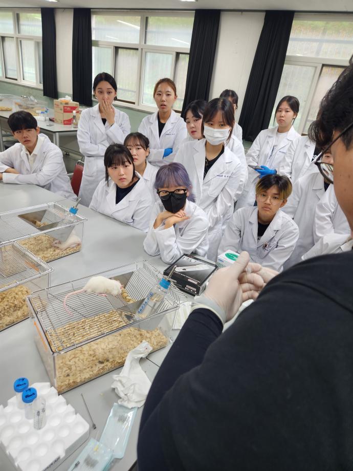 본문 시작 홈으로 학과게시판 학과소개 교육과정 학과게시판 관련사이트 홈페이지가이드 포토갤러리 학과소식 포토갤러리 동아리 소개 포토갤러리 페이스북 트위터 프린트 실험동물 기술원 시험 대비 특강_바이오톡스텍 동물바이오헬스학과 2631 2023-07-27 세명대학교 동물바이오헬스학과에서는 비교과 과정으로 실험동물기술원 시험 대비 과정을 7월18일부터 8월4일까지 3주간 진행중입니다. 임상병리학과학생들과 동물바이오헬스학과 학생들이 방학 중에도 열심히 공부하고 있습니다. 비교과과정 특강으로 우리나라 최대 CRO기업인 바이오톡스텍에서 회사소개와 실험동물 투약 및 채혈과 관련하여 귀중한 노하우를 전수해 주고 가셨습니다. 학생들의 능력치를 한 단계 상승시킬 수 있는 좋은 기회가 되었습니다. 목록 이전세명고등학교 입시 박람회 다음 동물바이오헬스학과 여름방학 특별활동 1탄_세떠고 4기_1부 담당부서 : 동물보건학과 담당자 : - 연락처 : 043-649-1627 최종수정일 : 2024-10-26 만족도조사 만족도 조사 이 페이지에서 제공하는 정보에 대하여 만족하시나요? 매우만족 만족 보통 불만족 매우불만족