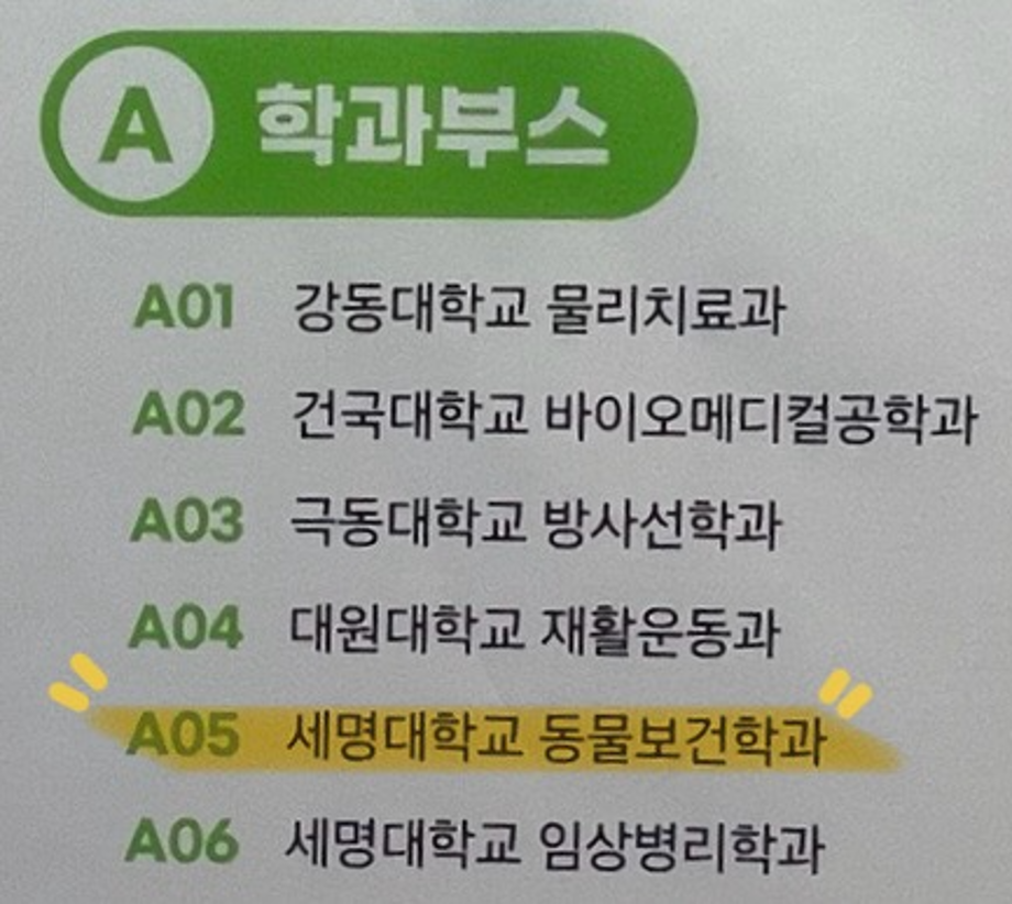 본문 시작 홈으로 학과게시판 학과소개 교육과정 학과게시판 관련사이트 홈페이지가이드 포토갤러리 학과소식 포토갤러리 동아리 소개 포토갤러리 페이스북 트위터 프린트 충주지역 오픈캠퍼스 참여 동물보건학과 1690 2024-07-30 한국교통대학교에서 열린 "바이오 꿈나무"를 다녀왔습니다. 충주 지역에 있는 중.고등학교 학생들에게 동물보건학과는 어떤 걸 배우는지 간단하게 소개해 주었습니다. 대형견 CPR 교육을 할 수 있게 모형을 준비하여 직접 경험을 하며 재미있게 하여 동물보건학과를 기억하도록 부스 운영을 마무리 지었습니다. 목록 이전다음 사진은 어떤 동물일까요? _ 두번째 다음 시민과학자 2차 활동 담당부서 : 동물보건학과 담당자 : - 연락처 : 043-649-1627 최종수정일 : 2024-10-26 만족도조사 만족도 조사 이 페이지에서 제공하는 정보에 대하여 만족하시나요? 매우만족 만족 보통 불만족 매우불만족