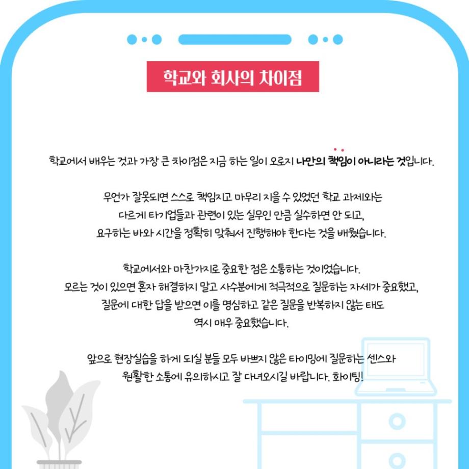 본문 시작 홈으로 학과자랑 학과소개 학과과정 시영소식 입학/취업 AI 학과자랑 SNS소통 홈페이지가이드 갤러리 학과자랑 갤러리 공모전 동아리 졸업전시회 갤러리 페이스북 트위터 프린트 세명대학교 시각영상디자인 학생들의 현장실습 1탄 시각영상디자인학과 4139 2022-07-20 세명대학교 시각영상디자인 학생들의 현장실습 1탄 목록 이전졸업생 작품 다음 2022년 여름방학 현장실습 알아보기! 2탄 담당부서 : 시각영상디자인학과 담당자 : - 연락처 : 043-649-1726 최종수정일 : 2024-10-26 만족도조사 만족도 조사 이 페이지에서 제공하는 정보에 대하여 만족하시나요? 매우만족 만족 보통 불만족 매우불만족
