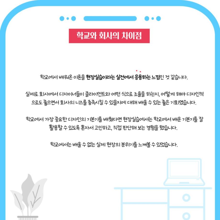 본문 시작 홈으로 학과자랑 학과소개 학과과정 시영소식 입학/취업 AI 학과자랑 SNS소통 홈페이지가이드 갤러리 학과자랑 갤러리 공모전 동아리 졸업전시회 갤러리 페이스북 트위터 프린트 2022년 여름방학 현장실습 알아보기! 2탄 시각영상디자인학과 4752 2022-08-03 2022년 여름방학 현장실습 알아보기! 2탄 유튜브 링크 https://www.youtube.com/watch?v=4CEG3-eYjWE&t=25s [출처] 2022년 여름방학 현장실습 알아보기! 2탄|작성자 세명대학교시각영상 목록 이전세명대학교 시각영상디자인 학생들의 현장실습 1탄 다음 세명대학교만의 특별한 휴식공간 담당부서 : 시각영상디자인학과 담당자 : - 연락처 : 043-649-1726 최종수정일 : 2024-10-26 만족도조사 만족도 조사 이 페이지에서 제공하는 정보에 대하여 만족하시나요? 매우만족 만족 보통 불만족 매우불만족